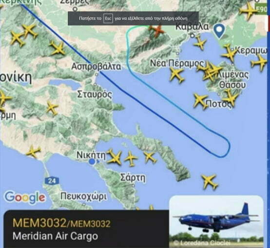 Στον χάρτη που δημοσιεύουμε , μπορεί να δει κανείς την πορεία του αεροσκάφους που έπεσε πριν τις 11 το βράδυ στο Παλαιοχώρι Παγγαίου. Όπως θα δείτε, το αεροσκάφος αφού πέρασε επάνω από την περιοχή της Κερκίνης και την Ασπροβάλτα, κατευθύνθηκε προς τον θαλάσσιο χώρο βορειοανατολικά του τρίτου ποδιού της Χαλκιδικής και εκεί έκανε αναστροφή κατευθυνόμενο ξανά προς τη στεριά όπου φαίνεται πως προσπάθησε Δυτικά να περάσει από την περιοχή του Παγγαίου και να προσεγγίσει το αεροδρόμιο της Καβάλας για να πραγματοποιήσει αναγκαστική προσγείωση. Δυστυχώς όμως όπως εκ του αποτελέσματος φάνηκε, όσες προσπάθειες και να έγιναν από το πλήρωμα του αεροσκάφους, αυτό κατέπεσε φλεγόμενο σε αγροτική περιοχή στο Παλαιοχώρι Παγγαίου όπου και στο σημείο συντριβής προκλήθηκαν πολλές εκρήξεις. Αυτή τη στιγμή πραγματοποιείται σύσκεψη στο Δημαρχείο Παγγαίου ενώ όπως πληροφορίες αναφέρουν όσοι βρέθηκαν κοντά στο σημείο του δυστυχήματος , απομακρύνθηκαν λόγω της τοξικότητας που επικρατούσε στην ατμόσφαιρα. Οι έρευνες θα συνεχιστούν όπως αναφέραμε σε προηγούμενη ανάρτηση μας, με μη επανδρωμένο αεροσκάφος τύπου Drone προκειμένου να υπάρξει χωρίς κίνδυνο για τους εμπλεκόμενους , αμεσότερη αξιολόγηση της κατάστασης πριν να υπάρξει επέμβαση από πληρώματα σωστικών και όχι μόνο συνεργείων. Όπως πληροφορίες αναφέρουν, ο πιλότος σε επικοινωνία του με τον Πύργο ελέγχου, έκανε αναφορά σε μηχανική βλάβη και ενημέρωσε τόσο για τον αριθμό των επιβαινόντων όσο και για την επικινδυνότητα του φορτίου και στη συνέχεια επιχείρησε να προσεγγίσει το αεροδρόμιο Καβάλας για να πραγματοποιήσει αναγκαστική προσγείωση, όμως άρχισε απότομα να χάνει ύψος και συνετρίβη. Αυτή τη στιγμή η φωτιά που προκλήθηκε από την πτώση του μοιραίου αεροπλάνου έχει περιοριστεί όμως υπάρχουν αναζοπυρώσεις όπως αναφέρουν παράγοντες που βρίσκονται στην περιοχή.