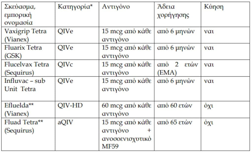To αντιγριπικό εμβόλιο συνταγογραφείται βάσει των οδηγιών του Εθνικού Προγράμματος Εμβολιασμών.