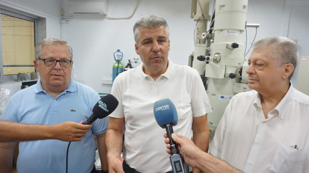 Επίσκεψη στο εργαστήριο ΗΦΑΙΣΤΟΣ της σχολής Θετικών Επιστημών είχε ο κ. Τοψίδης και την συμμετοχή του Αντιπεριφερειάρχη Καβάλας κ. Μαρκόπουλο. Παρέστησαν ο κασμήτωρας της ΣΘΕ καθηγητής Κώστας Ταρχανίδης, ο πρόεδρος του τμήματος Χημείας καθηγητής κ. Γ. Κύζας, ο πρόεδρος του τμήματος Φυσικής αναπληρωτής καθηγητής Ν. Βορδός, και ο πρώην πρόεδρος του ιδρύματος καθηγητής κ. Νάσος Μητρόπουλος. Ο Περιφερειάρχης ξεναγήθηκε στα υπερσύγχρονα εργαστήρια που διαθέτει η ΣΘΕ. Επισκέφτηκε τον προσομοιωτή γεωτρήσεων πετρελαίου, μια υπερσύγχρονη εγκατάσταση που προσελκύει εκπαιδευόμενους και από άλλες χώρες, τον Υπερυπολογιστή στο τμήμα GRID με την τεράστια υπολογιστική δύναμη επεξεργασία και αποθήκευση δεδομένων που διαθέτει και ανυψώνει το τμήμα στα κορυφαία της χώρας, την Θερμοκοιτίδα ΘΕΚΛΑ και το εργαστήριο ΗΦΑΙΣΤΟΣ που διαθέτει υποδομές και μια μεγάλη γκάμα σύγχρονων μηχανημάτων που διευκολύνουν την παραγωγή καινοτομίας και νέων προϊόντων.