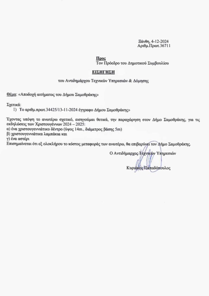 Εντελώς αιφνιδιαστικά πριν λίγη ώρα, ο πρώην Δήμαρχος Ξάνθης Μανώλης Τσέπελης, απέστειλε Δελτίο Τύπου με το οποίο επιχειρεί να κεραυνοβολήσει την Διοίκηση Κοντού στον Δήμο Ξάνθης, διότι αποδέχτηκε αίτημα του Δήμου Σαμοθράκης για παραχώρηση χριστουγεννιάτικου διακόσμου (το δέντρο της Σταυρούπολης) και προσκάλεσε έκτακτο δημοτικό συμβούλιο δια περιφοράς προκειμένου να συζητηθεί το θέμα αυτό.