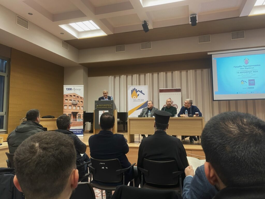 Με μεγάλη συμμετοχή πραγματοποιήθηκε η Ημερίδα με θέμα το «Κανονιστικό και Εφαρμοστικό Πλαίσιο Πυροπροστασίας», την Τετάρτη 18 Δεκεμβρίου 2024, στην αίθουσα «ΓΕΩΡΓΙΟΣ ΠΑΥΛΙΔΗΣ» της Π.Ε. Ροδόπης, που διοργάνωσε το Περιφερειακό Τμήμα Θράκης του Τεχνικού Επιμελητηρίου Ελλάδας σε συνεργασία με το Ελληνικό Ινστιτούτο Πυροπροστασίας Κατασκευών (ΕΛΙΠΥΚΑ).