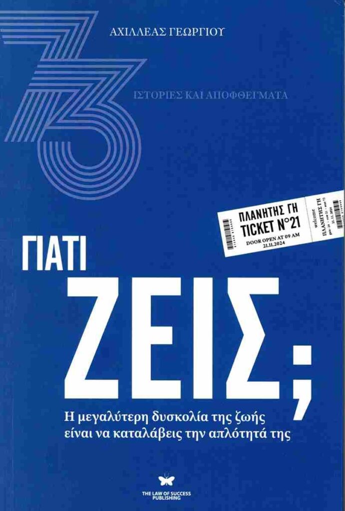Σας γνωρίζουμε ότι το βιβλιοπωλείο Πυργελή οι εκδόσεις The Law of Success Publishing, το Coach the day και ο Σύλλογος Κυπρίων Ν. Ξάνθης, σας προσκαλούν στην Ξάνθη, σε μια Performance παρουσίαση βιβλίου του Αχιλλέα Γεωργίου με τίτλο «Γιατί Ζεις;», με αφορμή το νέο ομώνυμο βιβλίο του, την Τετάρτη 05 Φεβρουαρίου 2025, στις 19:30, στο χώρο του Coach the day, Ανδρέου Δημητρίου 11.