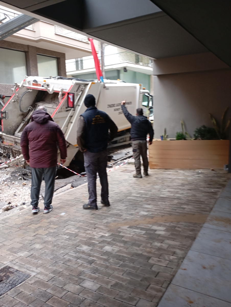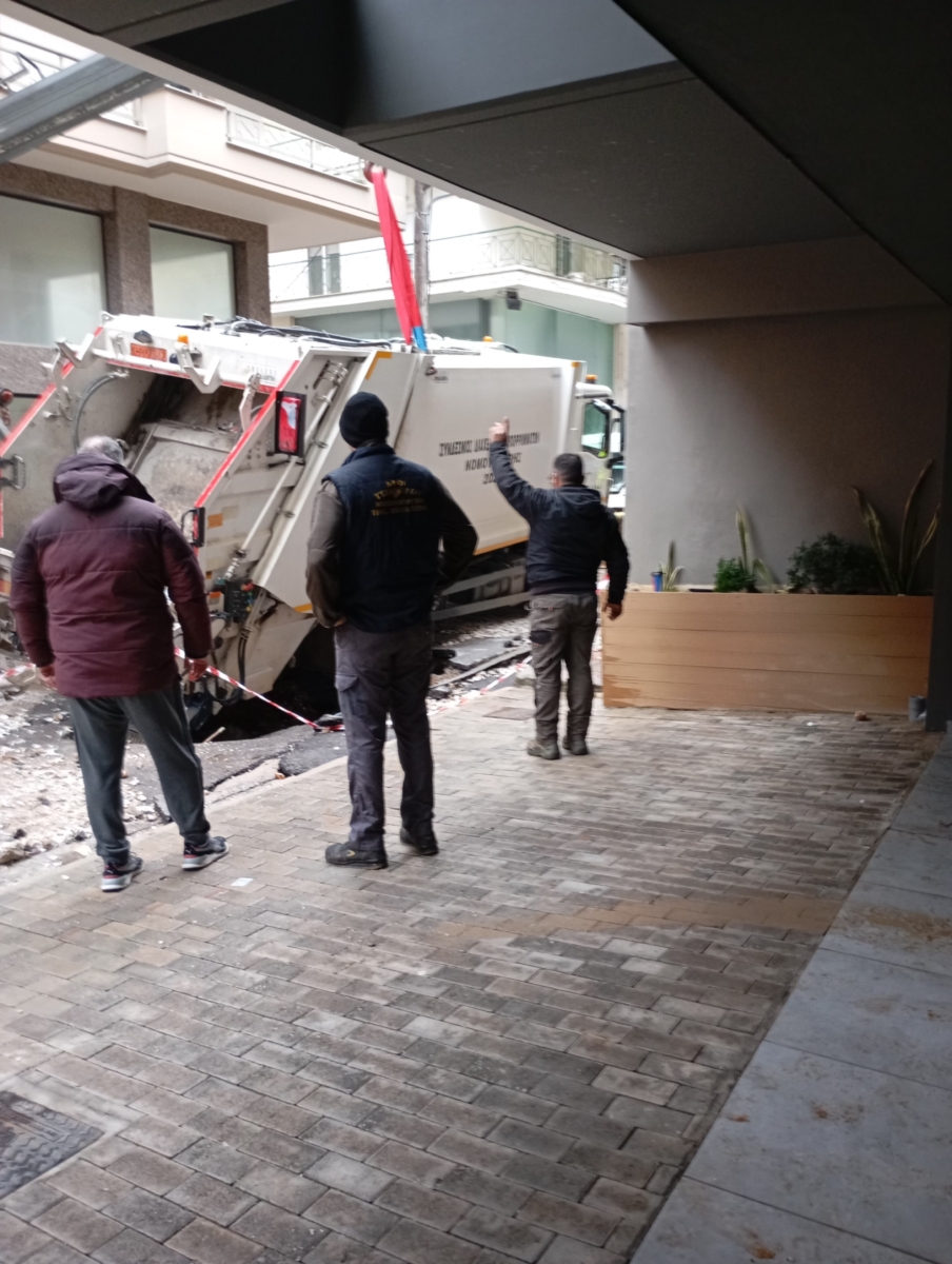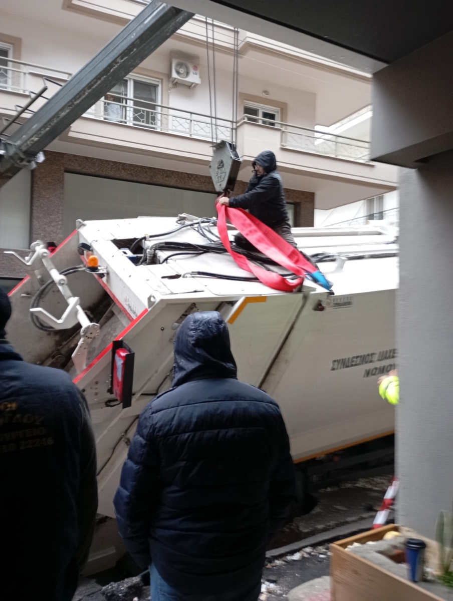 Με τη συνδρομή γερανοφόρου οχήματος του Στρατού και τεχνικών συνεργείων απομακρύνθηκε πριν από λίγο το απορριμματοφόρο που είχε πέσει σε κρατήρα οδοστρώματος στην οδό Ανδρέου Δημητρίου.